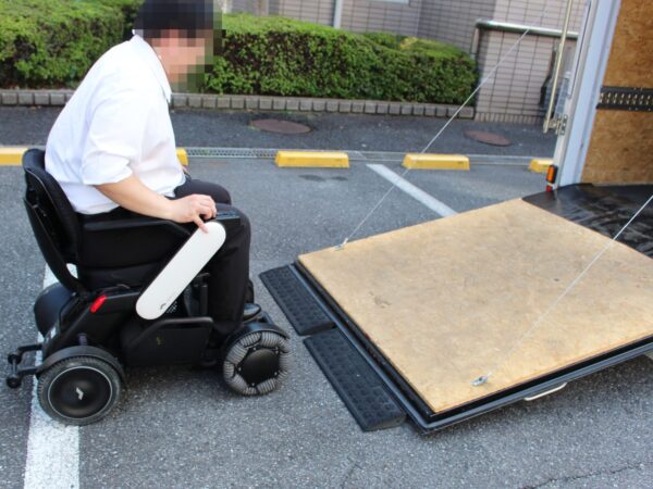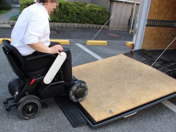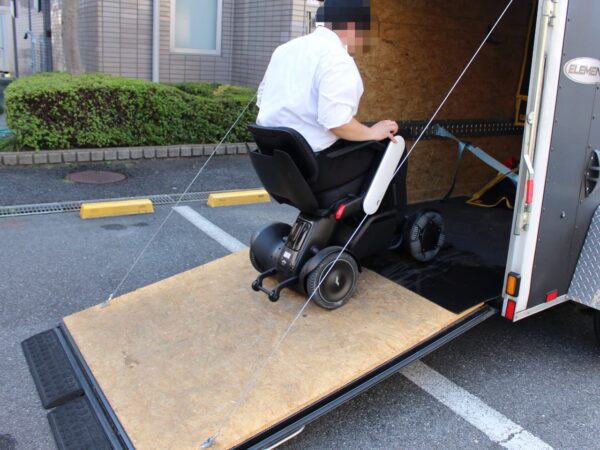 実際に電動車いすに乗車したまま載せました