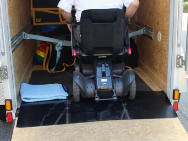 ここでは、実際に電動車いすをカーゴトレーラーに載せたときの様子を、ご紹介します。